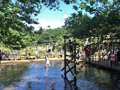 アスレチックは小学生以外の人も楽しめます。中学生の人も楽しめます。中には大人の人たちもかなり楽しんでいるので年齢関係なく遊ぶことのできるスポットです!